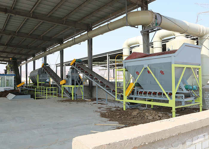 1Fermentação: A máquina de torneamento de pilhas é utilizada para girar a pilha, de modo a que a temperatura da pilha suba acima de 55°C. A operação de empilhamento é realizada a cada 1-2 dias,e após fermentação a 55°C durante 10-15 dias(O propósito de girar a pilha é promover a evaporação da água, aumentar o abastecimento de oxigénio dentro da pilha,e promover a rápida propagação e fermentação bacteriana)